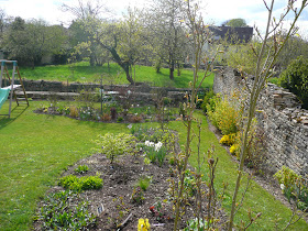 Elle a été agrandie lors des vacances de février, de nouveaux rosiers ont été installés et des vivaces sont mortes pendant l'hiver!!! De grands changements donc..