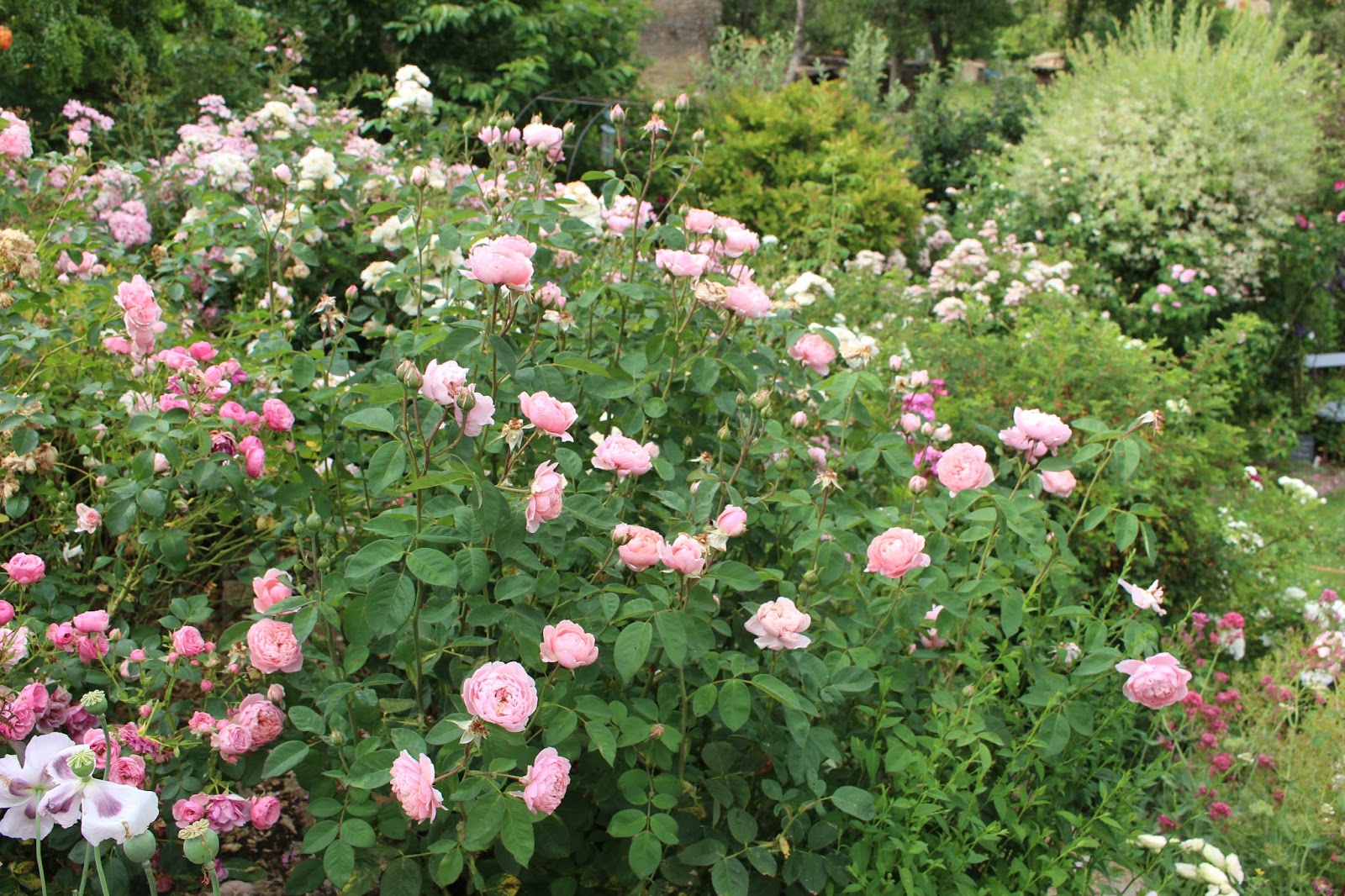 Il faut dire que cette année est particulière. Avec les gelées printanières, certains de mes rosiers ont du subir une seconde taille, surtout les anglais. Du coup, ils fleurissent plus tard et le jardin est encore bien fleuri.